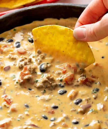 This Velveeta Queso Dip Has Rotel Tomatoes Beef Beer Black Beans And Smooth Velveeta Cheese It S Easy To Make Appetizer Recipes Yummy Appetizers Queso Dip